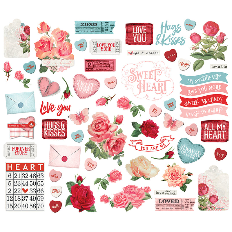 This collection comes with a beautiful line of Bits and Pieces, but the “My Sweetheart” patterned paper in this collection is full of gorgeous flowers that can provide additional decorative pieces by fussy cutting them. I used a few of those in clusters on my cards.