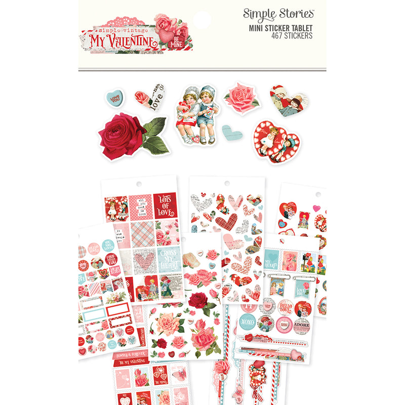After I adhered my cut file I added my 4 pictures. They are approximately 2x3’s and I added a white card stock mat to them. Once I was happy with the placement I began to add my embellishments. I used the bits and pieces, My Valentine Card Ephemera, the mini sticker tablet, the 6x12 chipboard, and Combo Sticker sheet. Then, I finished the layout off with my clusters of enamel dots from the So Happy Together collection.