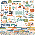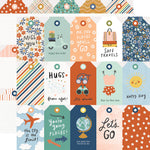 12 sheets of double-sided 12x12 Designer Cardstock including cut apart Journal Sheet, Tags and Elements, sizes 2x2, 3x4, 4x4 and 4x6 and a 12x12 Cardstock Sticker Sheet with 96 stickers; 108 pieces