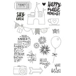 Photopolymer clear acrylic stamps; (16) stamps ; designed to coordinate with Magic Metal Dies
