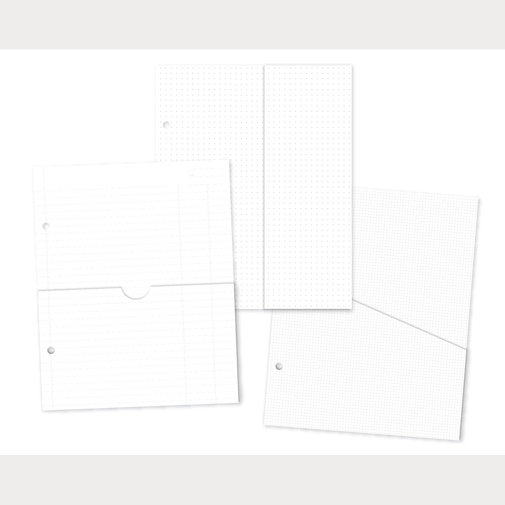 6x8 Pocket Binder Inserts- 3 Pocket Designs (Grid, Ledger and Dot Grid Patterns)