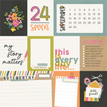 12 sheets of double-sided 12x12 Designer Cardstock including cut apart Journal, Tags and Element Sheets 12x12 Cardstock Sticker Sheet with 86 stickers; 98 pieces
