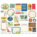 12 sheets of double-sided 12x12 Designer Cardstock including cut apart Journal, Tags and Element Sheets and a 12x12 Cardstock Sticker Sheet (83), Journal Bits (39), 6x12 Chipboard (28), Washi Tape (1); 163 pieces
